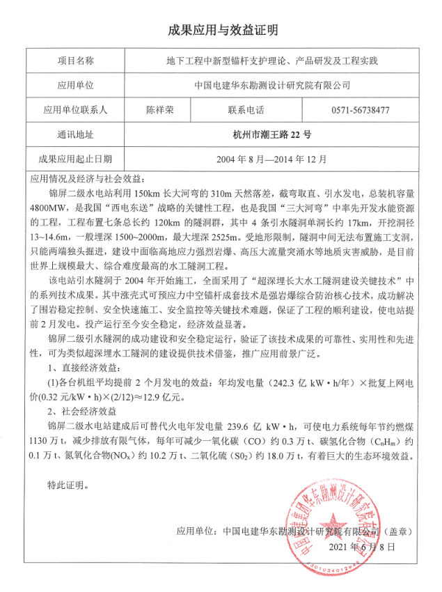 四川錦屏一級電站、錦屏二級電站、云南小灣電站、廣西百色水利樞紐、重慶彭水電站、河南抽水蓄能電站、官地電站、宜興抽水蓄能電站、四川白鶴灘電站、烏龍弄電站、安徽響水澗電站、滇中引水項(xiàng)目等工程。